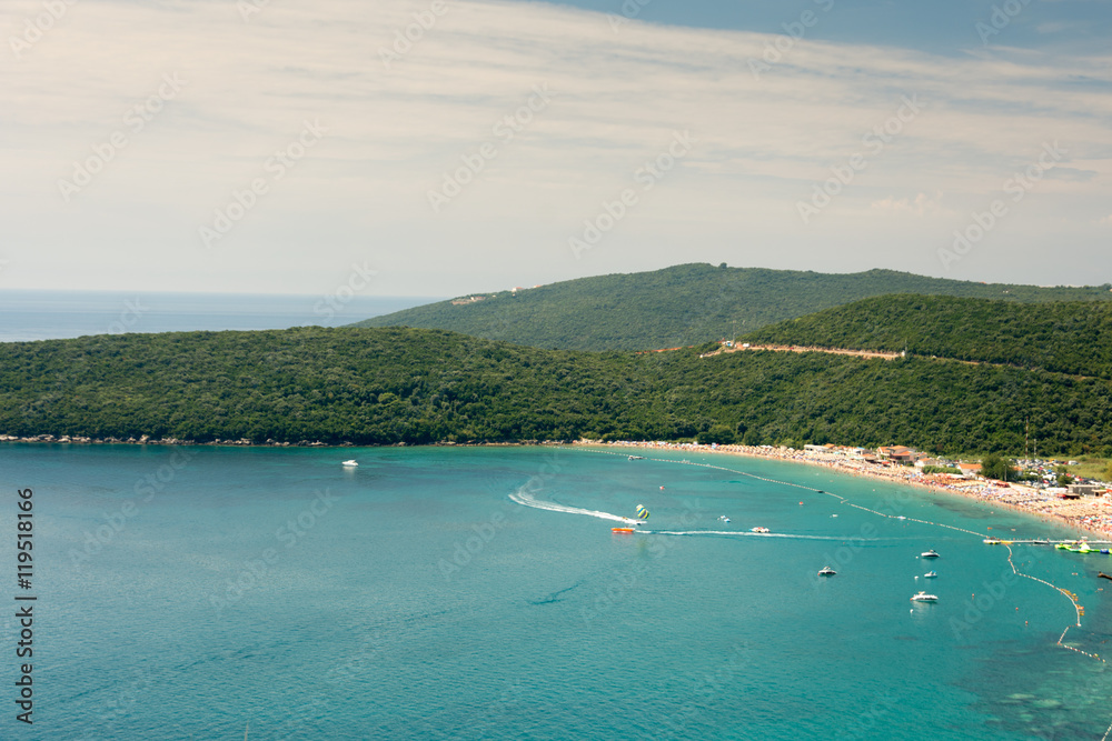 Aerial view adriatic sea montenegro blue sky beach sunny