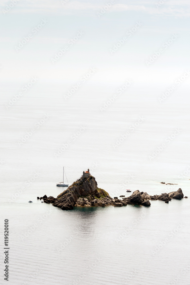 Aerial view islands in blue sea with copy space