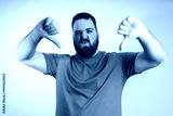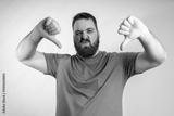 Choice thumb down. A man show that something in bad and drop down his thumbs. A man is expressing disapproval by giving a thumbs down, signaling that something is bad or undesirable.