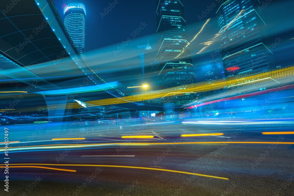 vehicle light trails at city road,shanghai,china.
