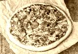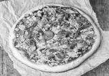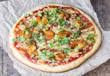Seafood. Fast food. Homemade Shrimps prawns pizza with herbs