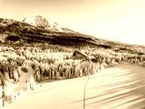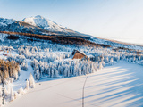 Frozen winter mountain lake Strbske pleso. Strbske lake with view of the High Tatras National Park, Slovakia