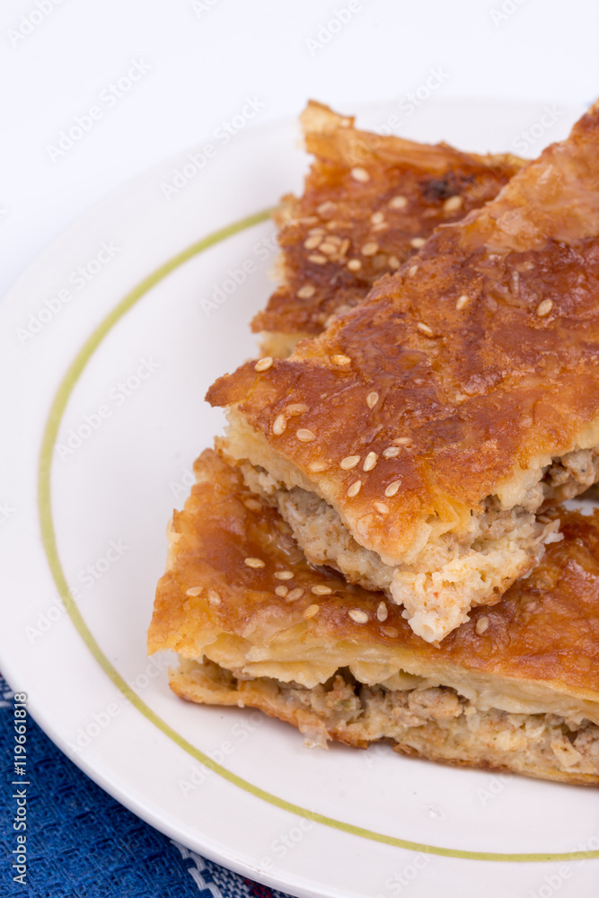 Closeup macro homemade meat pie