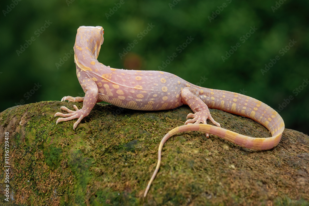 Albino varanus salvator monitor is a white albino version of the Water Monitor Lizard.