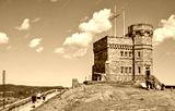 Radio communications tower, Signal Hill, St. John's, Newfoundland, Canada. Tower attracts tourists year round. Structure still sits perched atop high rugged coastline, Eastern Nfld,