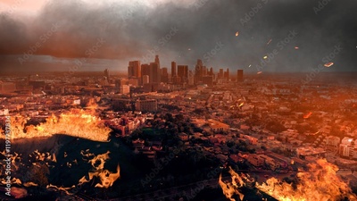 Wildfire engulfs urban landscape in Los Angeles as flames threaten the city skyline