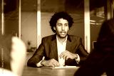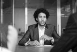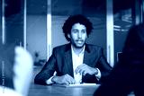 Handsome millennial Arabian male company executive manager hold meeting with shareholders in modern conference room, make speech, provide information, lead formal negotiations with corporate partners