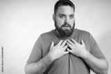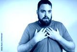Sick young man coughing at home. Asthma symptoms with coughing. Asthmatic problems of medical disease, shortness breathing, cough and wheezing