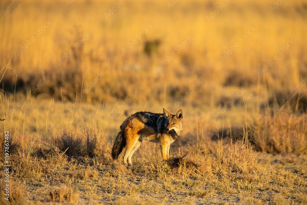 Black-backed jackal in savanna.