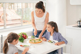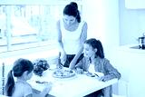 Mother cooking healthy meal for children