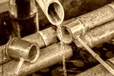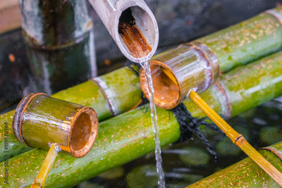 Water running out through bamboo pipe .