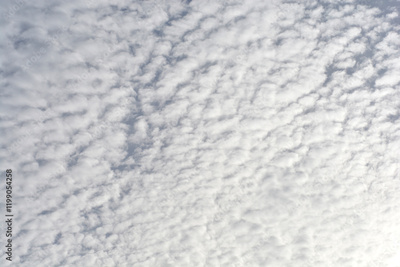 A sky covered with small, white cirrocumulus clouds resembling cotton