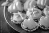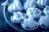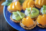 A plate of mini tarts with orange slices and kiwi slices