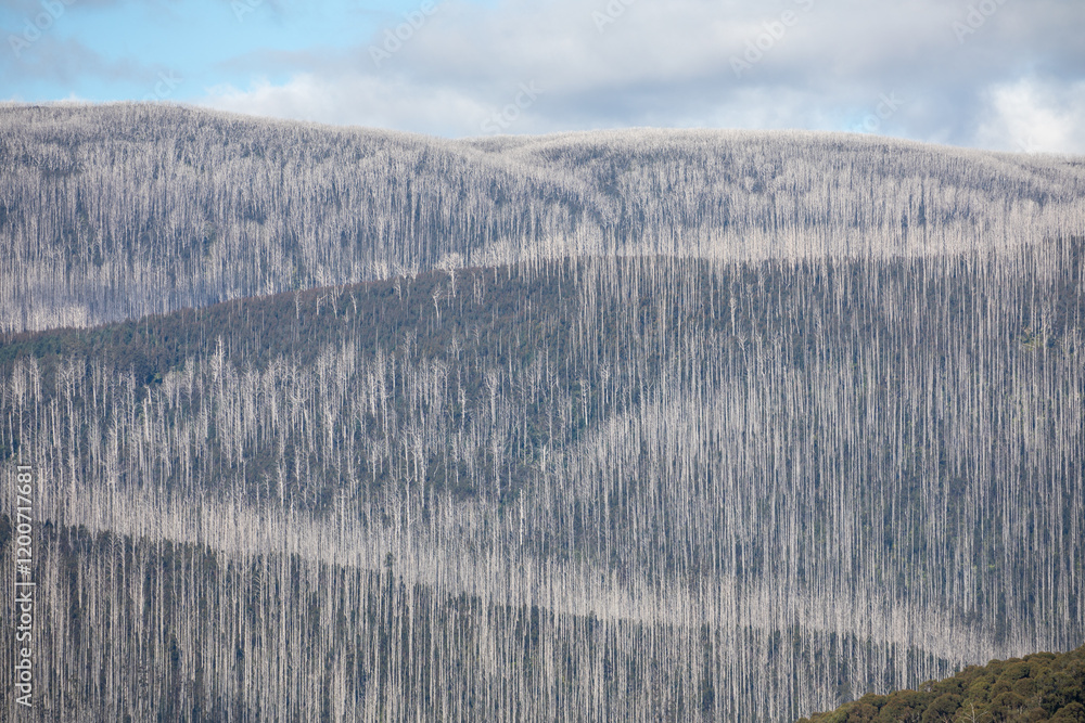 Thousand Of Dead Mountain Ash Tree's With Bush Regeneration After The Bush Fires Around Marysville Victoria 2019.
