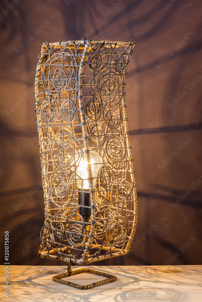 handicraft lamp, metal structure and decoration with wicker that showing the art of shadow