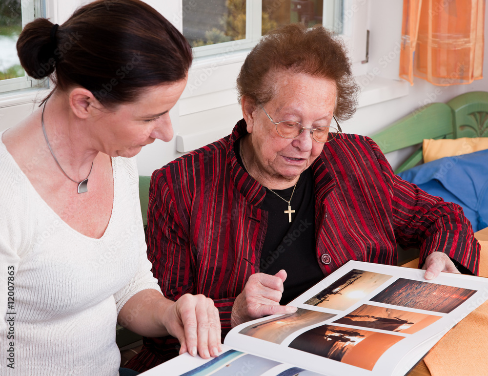 Seniorin blättert in Fotoalbum