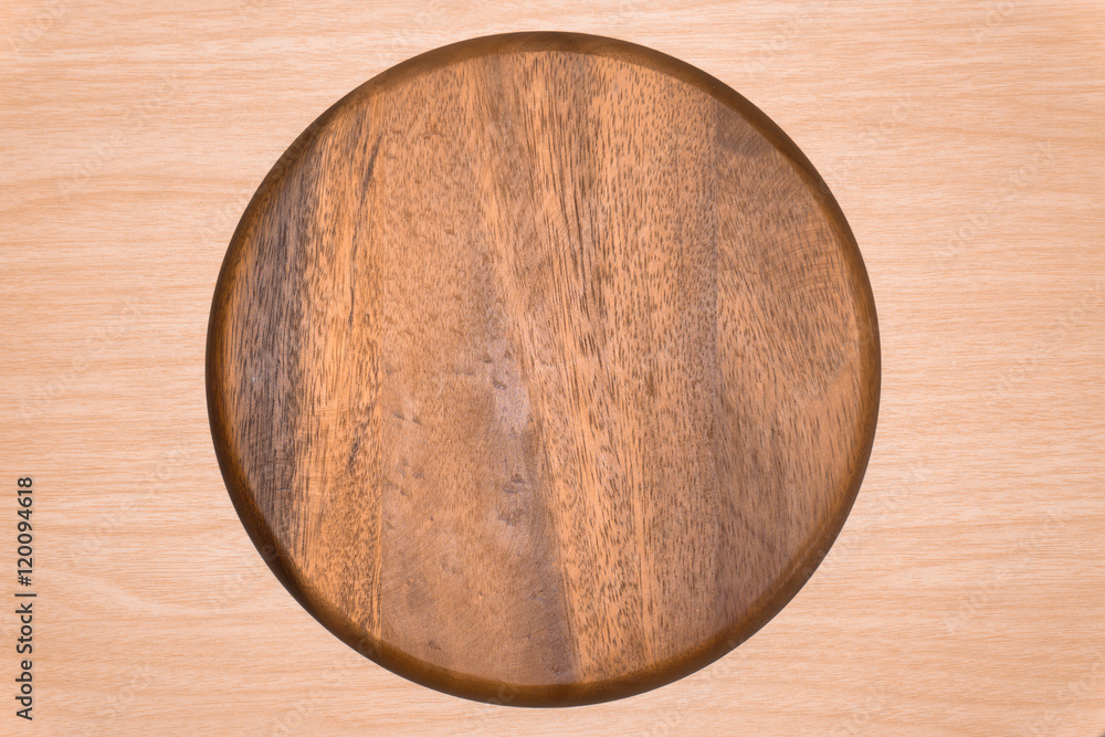 Top view : wood tray on table background.