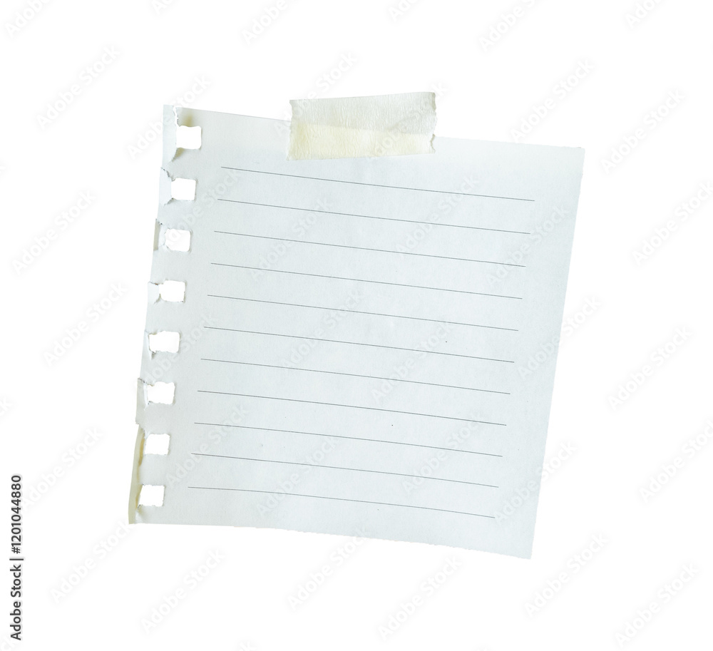 blank note paper with tape isolated on white