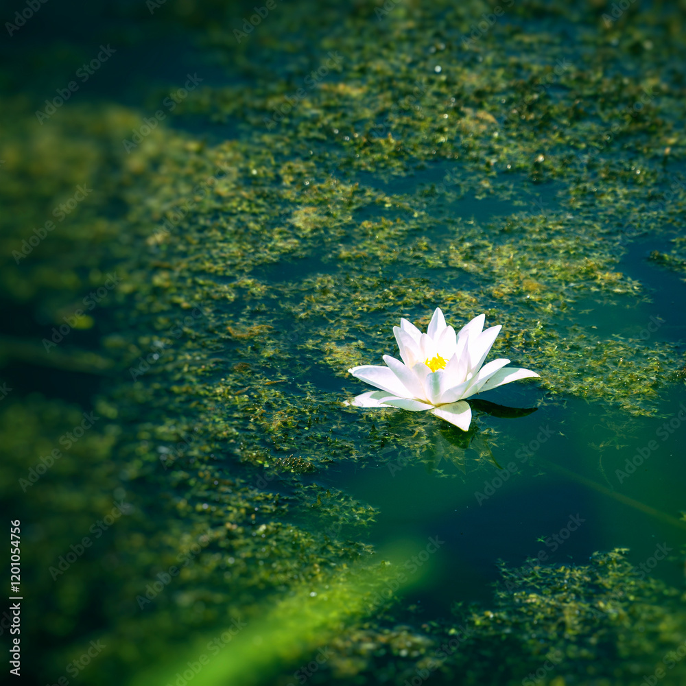 White Nenuphar or water Lily in the thickets of a pond or lake