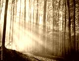 Red and colorful autumn colors in the beech forest