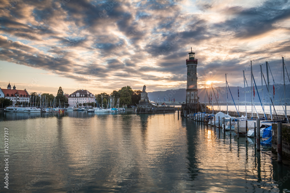 LINDAU, GERMANY - Lighthouse at port of Lindau harbour, Lake Constance, Bavaria