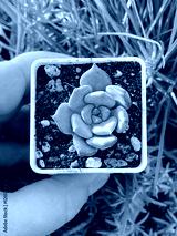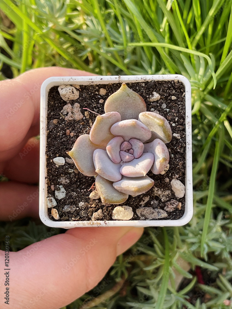 Top view of beautiful Echeveria Ruby Pastel in green grass background