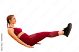 A focused woman performs ab exercises isolatied, showcasing strength and determination. Ideal for fitness articles and promoting a healthy lifestyle.