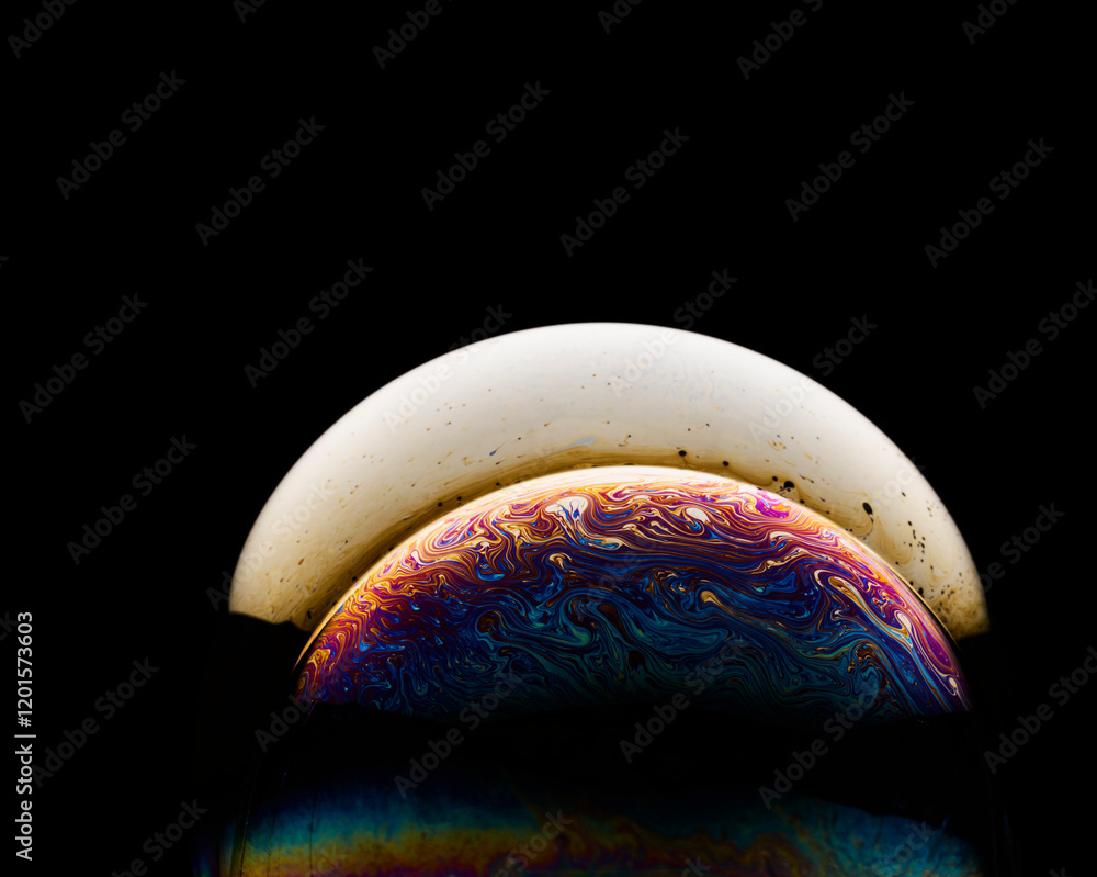 Space abstraction: bright color overflows in the style of soap bubbles. The play of light and textures creates the effect of a planet in the universe. Ideal for concepts of art and futurism.