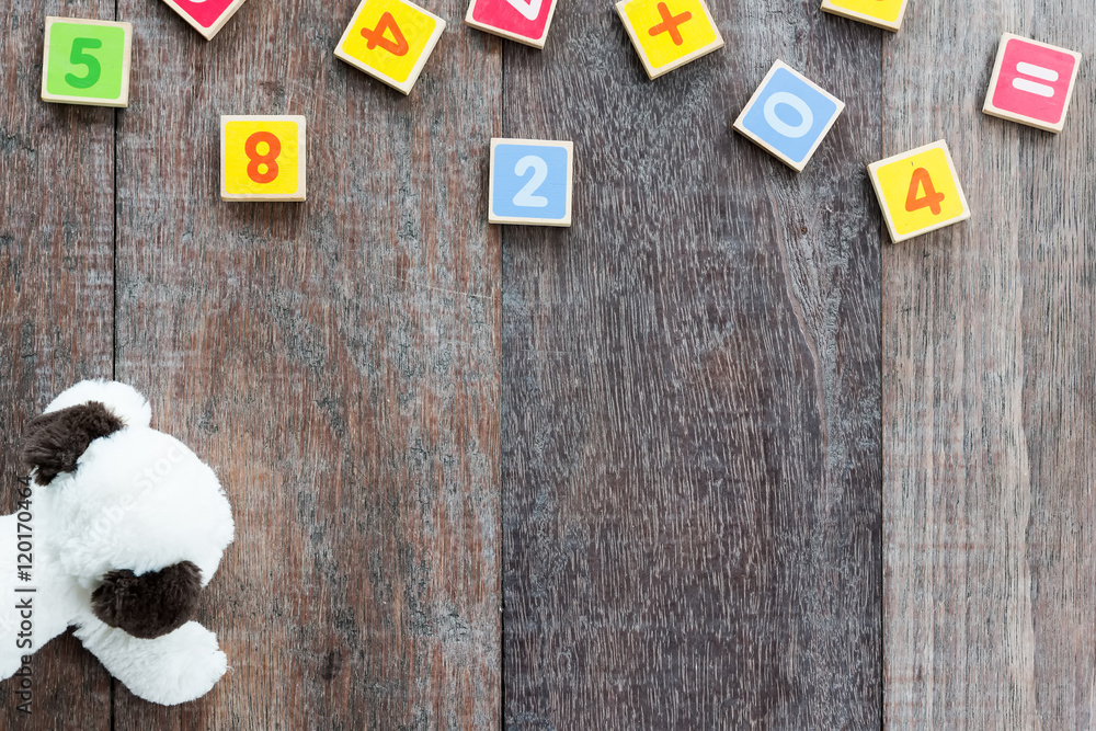 Wooden Toy Plate With Numbers on the wood.