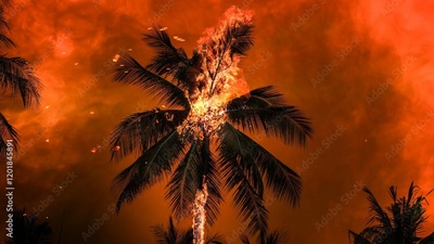 Wildfires engulf palm trees in Los Angeles, highlighting the devastating fire effects in 2025