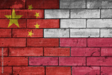 colourful painted big flag of china and flag of poland on a massive old brick wall background. concept