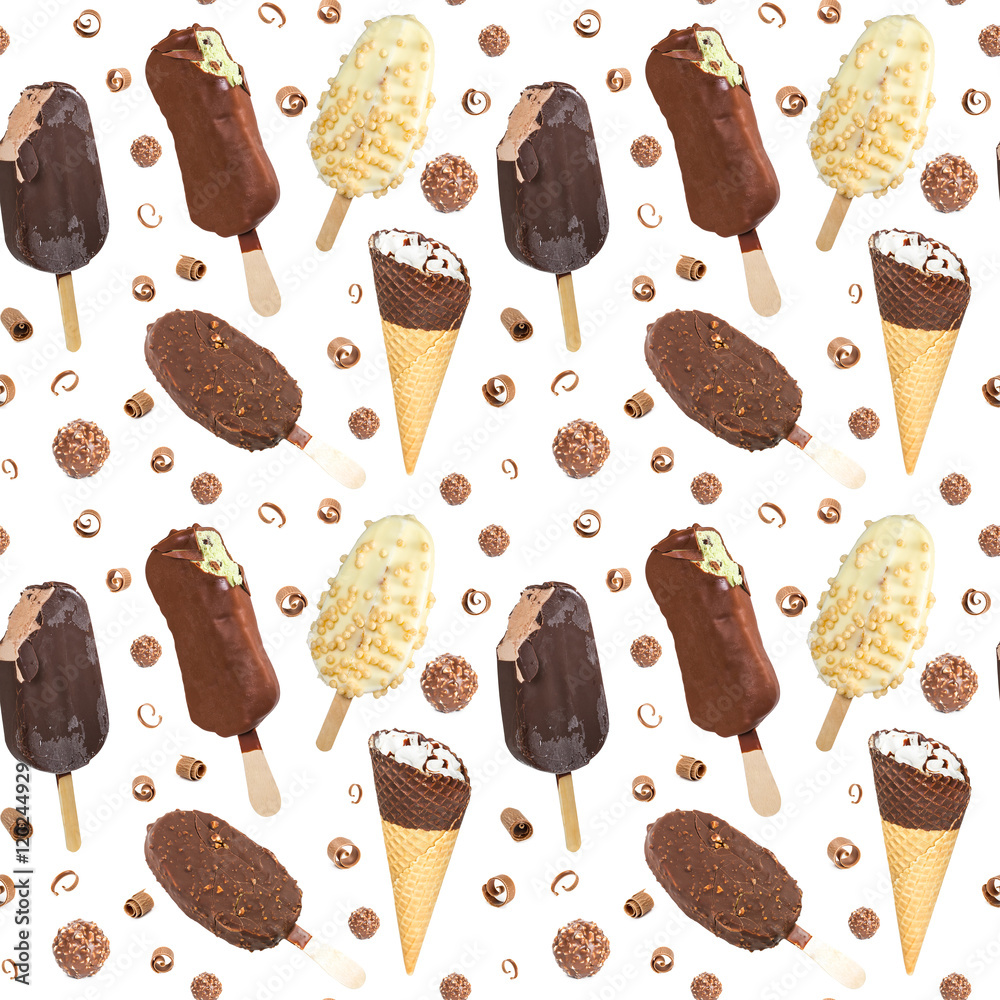 Seamless pattern with ice cream and chocolate candies
