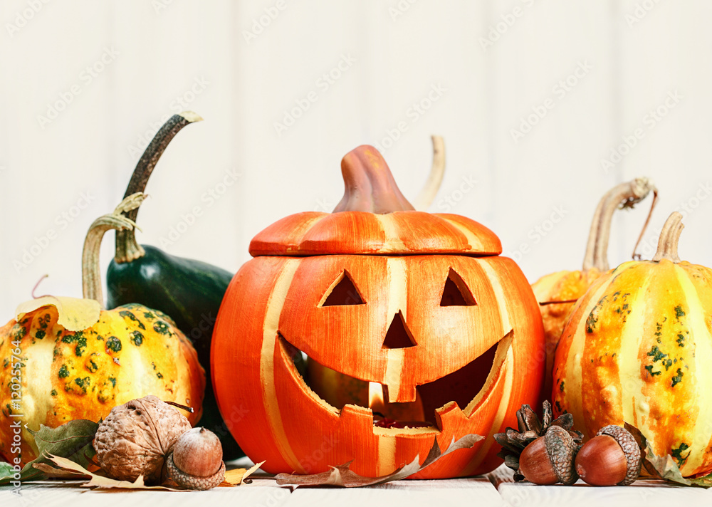 Halloween holiday still life happy scary pumpkin jack-o-lantern