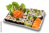 japanese seafood sushi and sashimi on white plate