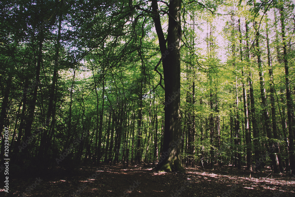 Looking through the trees in an English wood Vintage Retro Filte