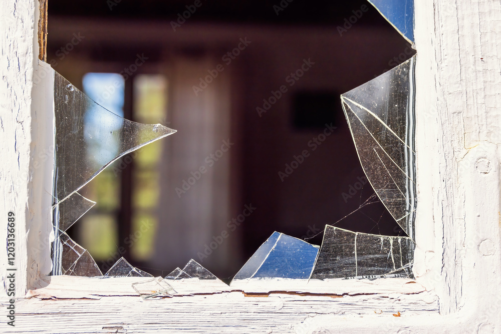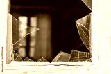 Broken glass in a window in a cottage
