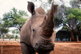 Wild african animals. Portrait of a white Rhino grazing in a National park