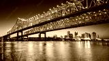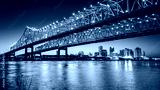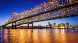 New Orleans City Skyline & Crescent City Connection Bridge at Night