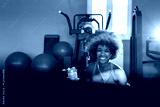 Young African American woman with a wild frizzy afro hairstyle s