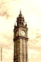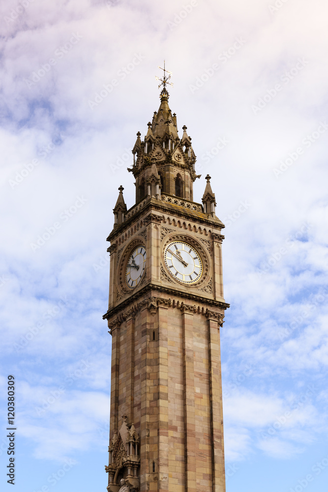Belfast Clock tower over cloudy sky