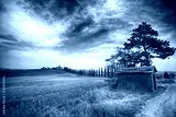 Cypress Trees rows and a white road, rural landscape in val d Orcia land near Siena, Tuscany, Italy, Europe.
