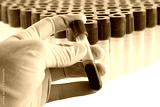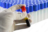Hand holding test tube with blood plasma ready for testing isolated on white background,Test tubes in laboratory isolated on white background(have clipping path)