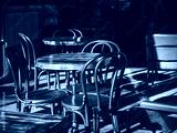 Table and Chairs Seats outdoor Cafe Restaurant with morning light