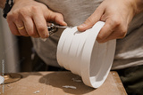 DIY Crafting: A Close-Up of Hands Shaping a White Plastic Mold