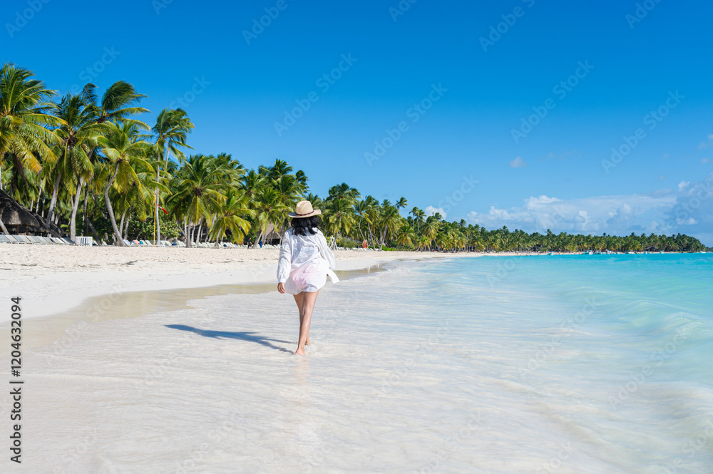 Woman walking on a beach in the Dominican Republic