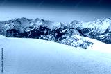 Majestic winter landscape and fantastic sunset,Alpe d Huez,France,Europe