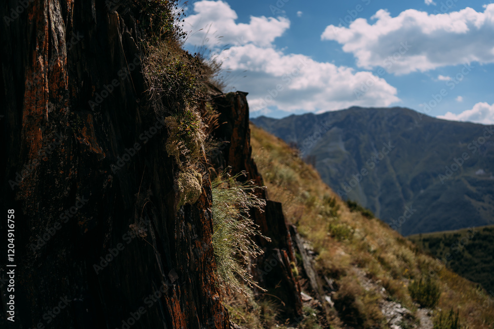 Rocks on the background of a clear summer sky. Mountain landscapes of the North Caucasus