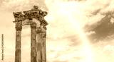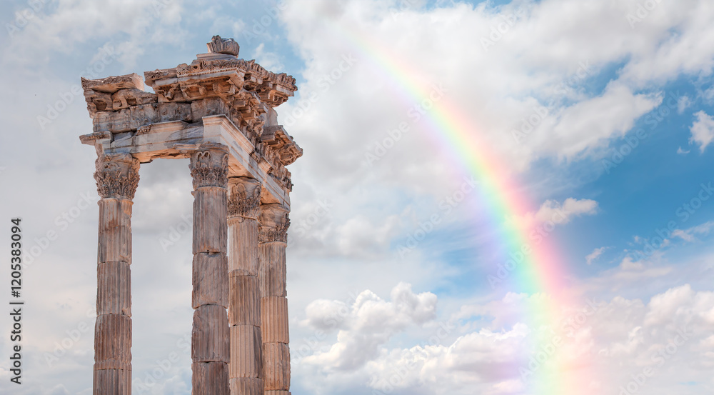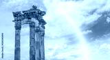 The Temple of Trajan an Pergamon with rainbow - Ruins of ancient greek city of Pergamon - Bergama, Turkey
