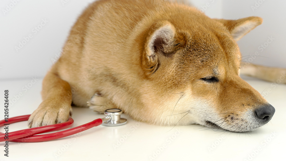 dog with a stethoscope at the veterinarian's appointment