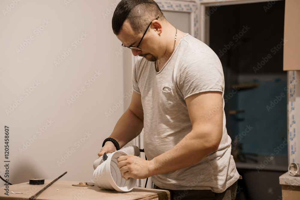 A Skilled Craftsman Transforming Materials in a Cozy Workspace